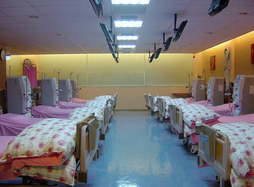 本院備有病患候診區及腎友、家屬休息區,區內提供大型42吋液晶電 視、微波爐、冰箱、電鍋等貼心家庭設備。能讓陪同到院的親友及家 屬們能有溝通交流的空間,腎友及病患在等待治療前,也有舒適的休 息空間。 |